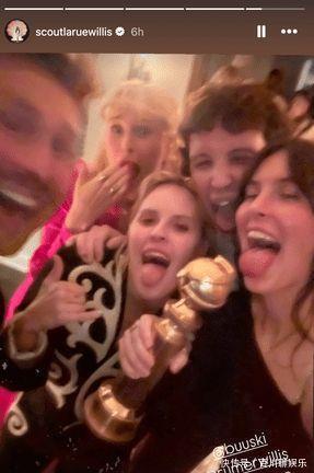 摩尔的女儿斯考特·威利斯(Scout Willis)在 Instagram 上发布了一段视频,记录下这一可爱瞬间,并在标题中写着:“她做到了”。在视频中,可以看到斯考特和摩尔的其他女儿,如鲁默(Rumer)和塔卢拉(Tallulah),当电视上宣布摩尔的名字时,都跳了起来。